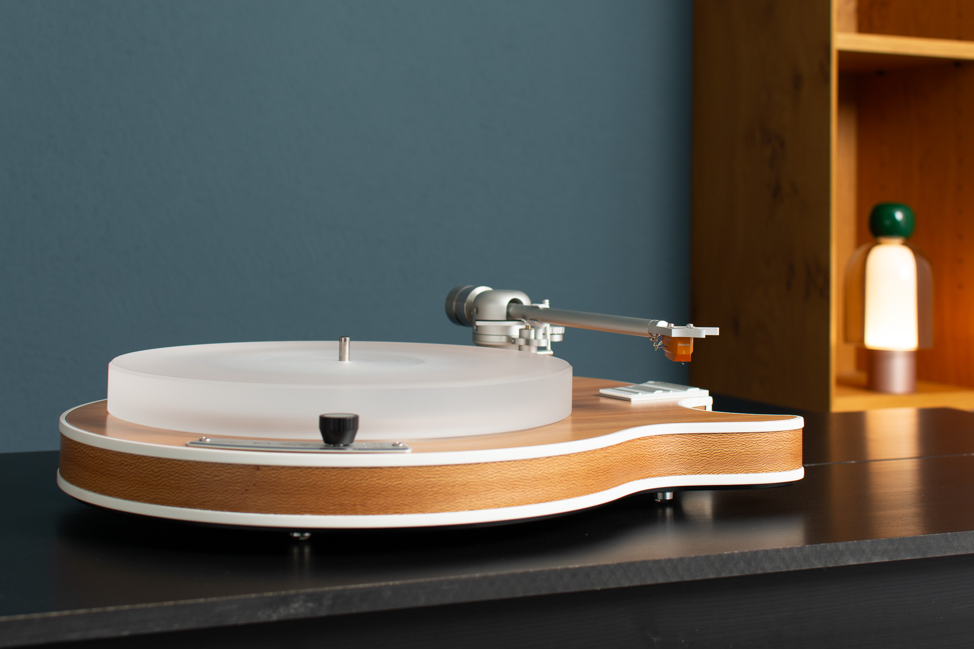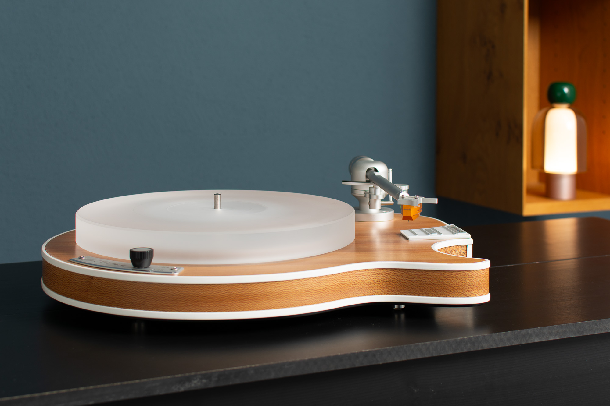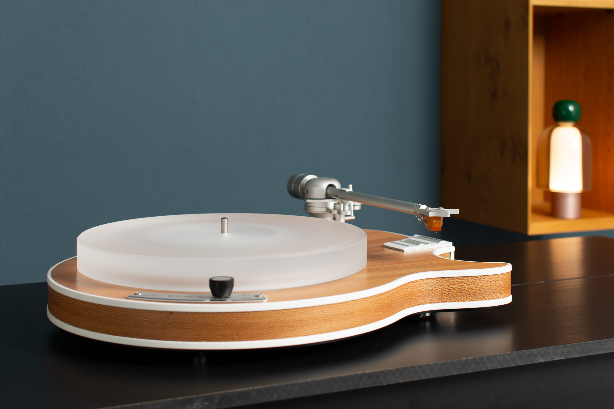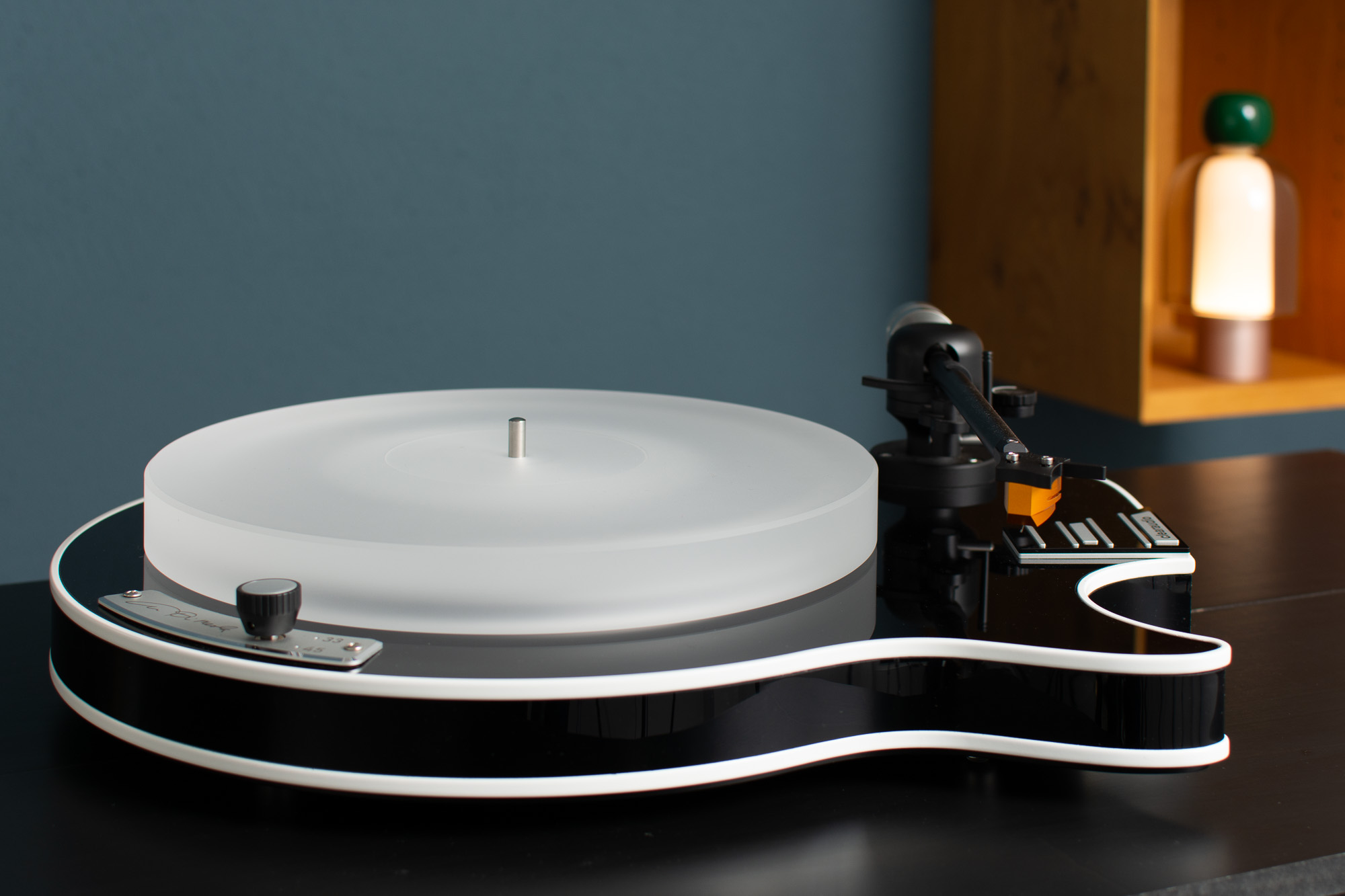 Die Gestaltung in Form einer E-Gitarre, wahlweise in elegantem Schwarz oder mit edlem Palisander-Furnier, ist ein Blickfang, der Musik und Kunst perfekt verbindet. Doch der Celebrity überzeugt nicht nur optisch: Mit einem entkoppelten Motor, dem präzisen Tacho-Speed-Control-System und der Sonderversion des Profiler-Tonarms setzt er auch akustisch Massstäbe. Der speziell entwickelte und vormontierte MM-Tonabnehmer "Celebrity" sorgt für ein klanglich überragendes Erlebnis und macht den Plattenspieler sofort einsatzbereit.