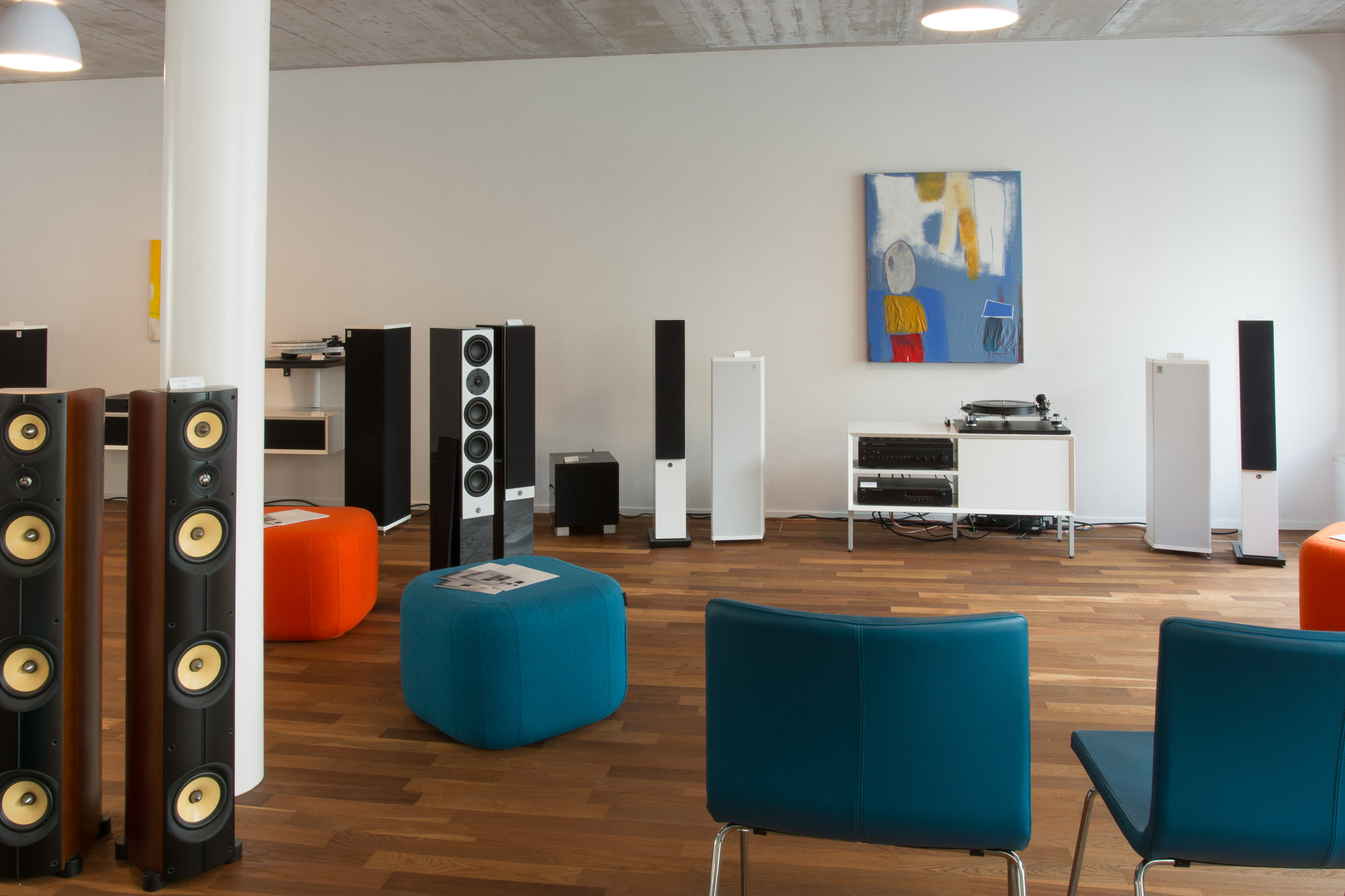 Die Räumlichkeiten werden nun definitiv zu klein und stereotec zieht in die heutigen Räumlichkeiten in die Brauereistrasse um. stereotec setzt dabei akustisch wie optisch auf eine wohnraumechte und moderne Einrichtung.